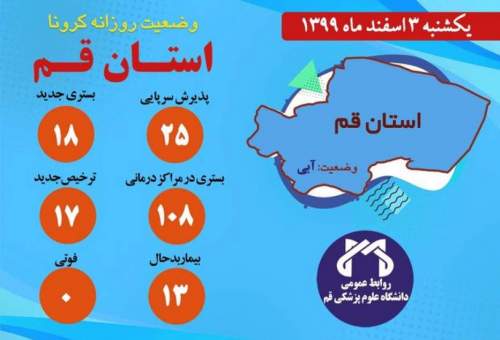 رئیس دانشگاه علوم پزشکی قم از بستری شدن 101 بیمار جدید در بخش ها و تحت نظر اورژانس بیمارستانها خبر داد و گفت: 73 نفر از کل بیمارانی که طی روزهای گذشته بستری بودند از مراکز درمانی مرخص شدند.